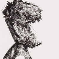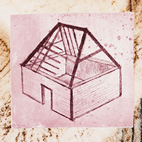 Procédé de gravure par soulèvement du vernis: un mélange de sucre et d'encre de chine ou gouache est appliqué directement sur la plaque de métal, celle-ci est ensuite recouverte d'un vernis avant d'être trempée dans l'eau: le sucre fond et décolle le vernis: la plaque est ensuite trempée dans l'acide pour faire attaquer les parties dénudées.